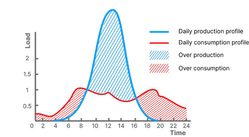 ESM systems are dimensioned to match the demand on a year long basis. They are not sized to match low outlier day. Cyclic power production is taken care of by our system, assuring energy supply all day of the year.