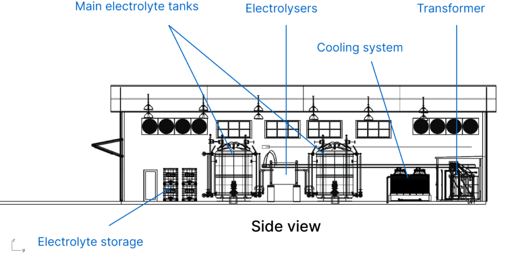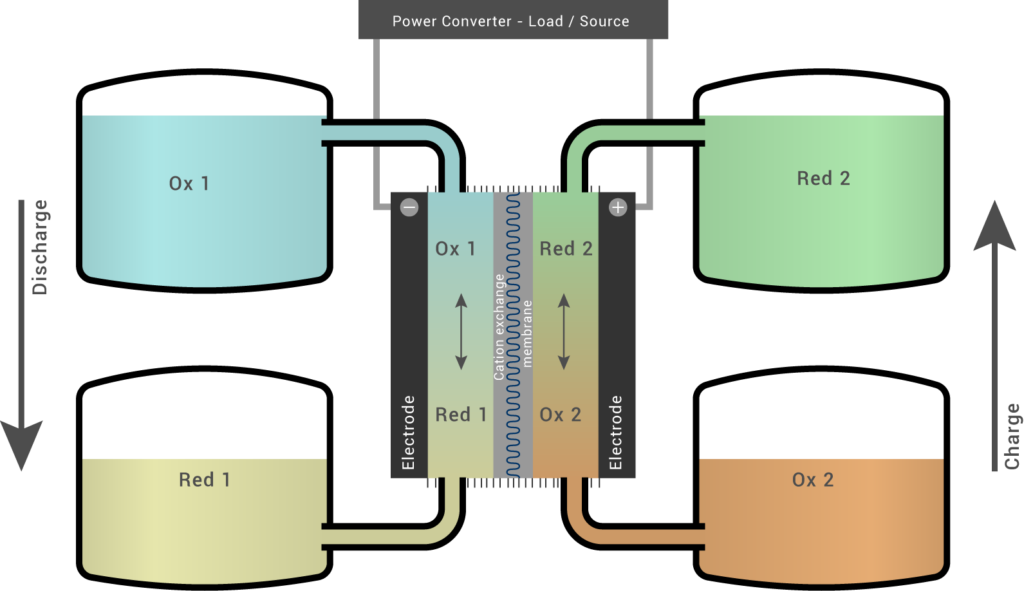 Proton exchange system -> store energy in liquid electrolyte then supply energy from charged liquid electrolyte.